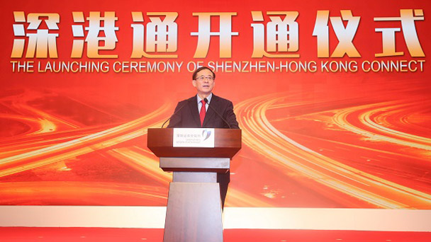 深港通正式開通。中國證監(jiān)會主席劉士余表示,深港通的開通是兩地資本市場進一步協(xié)同發(fā)展的歷史性時刻,在國際金融處于不確定、不穩(wěn)定的狀態(tài)中,開通深港通必將為國際、國內(nèi)金融市場注入正能量、信心和信任。