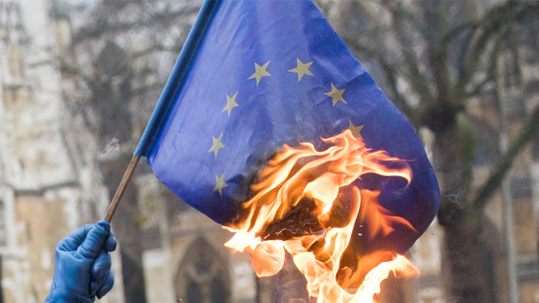 12月6日,英國最高法院“脫歐”程序案審理持續(xù),脫歐支持者在最高法院外焚燒歐盟旗幟示威。
