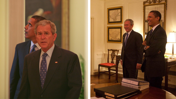 2008年11月10日,美國新當(dāng)選總統(tǒng)奧巴馬與前任總統(tǒng)喬治·沃克·布什在白宮舉行會面。隨著奧巴馬總統(tǒng)任期即將結(jié)束。當(dāng)時他首訪問白宮的情景,值得回顧。