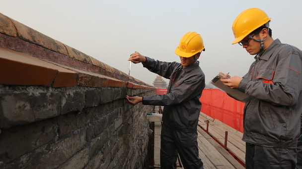 2016年11月26日,準(zhǔn)備進行修繕的故宮城墻旁搭起腳手架。
