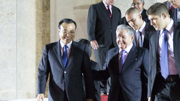 李克強(qiáng)總理當(dāng)?shù)貢r(shí)間24日在哈瓦那革命宮與古巴國務(wù)委員會主席兼部長會議主席勞爾·卡斯特羅舉行會談,就兩國關(guān)系及共同關(guān)心的國際和地區(qū)問題交換意見。李克強(qiáng)說,新形勢下,中方愿同古方密切高層往來,深化務(wù)實(shí)合作,加強(qiáng)在國際事務(wù)中的溝通協(xié)調(diào),促進(jìn)中古關(guān)系持續(xù)向前發(fā)展。