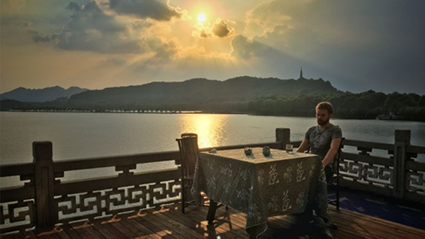 “這座城市縈繞著藝術氛圍,”這位43歲的英國藝術家說,“在這里藝術真的很重要。你走進任何一個酒吧或者餐廳,都有人在那里研究藝術。在杭州有很多人從事藝術工作,這真的給予我很多靈感?!?/p>