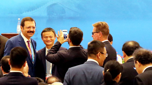二十國集團工商峰會開幕式上,馬云成為不少前排嘉賓要求合影的明星。