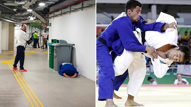 英國柔道選手阿什利?麥肯齊在里約奧運會60公斤級比賽中,不敵世界冠軍葉利多斯?斯梅托夫遺憾出局。賽后他跪在垃圾桶旁痛哭不已。