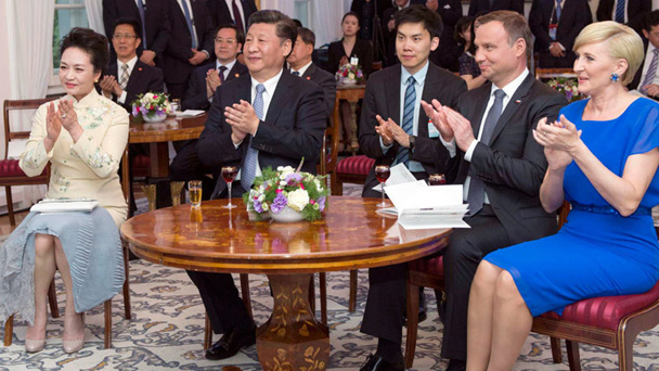 6月19日,國家主席習(xí)近平和夫人彭麗媛下午抵達波蘭首都華沙,當晚即應(yīng)邀來到貝爾維德宮做客。這是習(xí)近平和彭麗媛同杜達夫婦共同欣賞波蘭馬佐夫舍民族歌舞團的精彩演出。新華社記者 謝環(huán)馳 攝