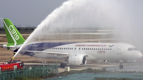 7月12日,C919大型客機在上海浦東機場起飛。當日,C919大型客機102架機從上海浦東機場起飛,歷經1小時46分的飛行,平穩降落在山東東營勝利機場,順利完成首次空中遠距離轉場飛行。
