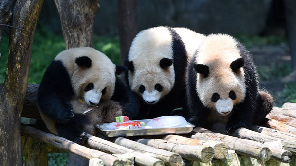 當日,重慶市動物園在猩猩館、羊駝館、熊貓館等開展為動物們防暑降溫活動。新華社記者唐奕攝 7月13日,重慶市動物園為大熊貓提供冰鎮竹筍和西瓜等。新華社記者唐奕攝 7月13日,重慶市動物園的猩猩在吃西瓜汁冰糕。