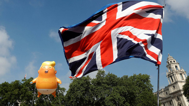 當地時間7月13日,英國抗議者在議會廣場花園放飛了“特朗普”寶寶,以此抗議特朗普出訪英國。