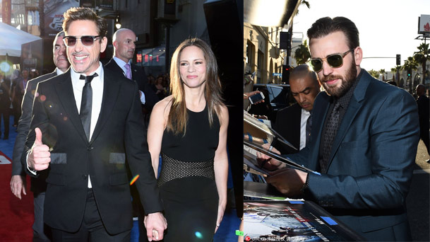 當地時間2016年4月12日,美國洛杉磯,電影《美國隊長3》首映。“美國隊長”克里斯-埃文斯《美國隊長3》首映簽名到手軟,小羅伯特-唐尼緊牽愛妻“虐盡”女粉絲。