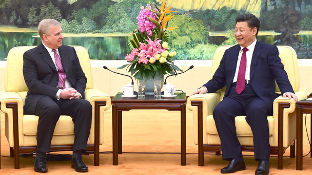 國家主席習近平5日在人民大會堂會見英國約克公爵安德魯王子。安德魯表示,習近平主席去年10月對英國的國事訪問十分成功,給英國王室和英國人民留下深刻印象。