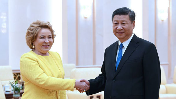 國家主席習近平4日在人民大會堂會見俄羅斯聯(lián)邦委員會主席馬特維延科。7月4日,國家主席習近平在北京人民大會堂會見俄羅斯聯(lián)邦委員會主席馬特維延科。