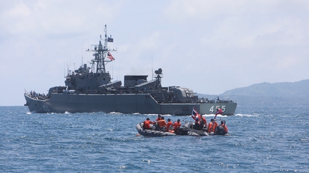 兩艘載有127名中國游客的船只在泰國當?shù)貢r間7月5日返回普吉島途中,突遇特大暴風雨發(fā)生傾覆。新華社記者秦晴攝 7月7日,在泰國普吉,救援人員在游船傾覆附近的海域進行搜救。