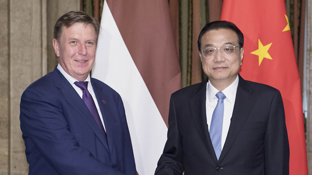 當?shù)貢r間7月7日下午,國務(wù)院總理李克強在索非亞下榻飯店會見拉脫維亞總理庫欽斯基斯。