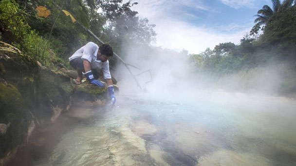 在秘魯?shù)膩嗰R遜叢林深處,有一條神秘的沸騰河流,水溫極高,動(dòng)物進(jìn)去就可能瞬間被煮熟。