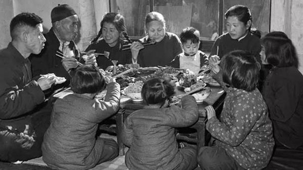 1961年春節(jié),人們在江蘇省南京夫子廟花燈市場上選購花燈。1966年春節(jié)前夕,上海市民在商店里選購塑料花。1980年春節(jié)前,四川彭縣農民陳開方(前右)買了一臺價值人民幣520元的12英寸黑白電視機,引來鄉(xiāng)親們羨慕的目光。