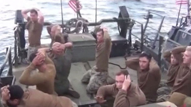 伊朗國家電視臺(tái)日前播出一段視頻,10名美國海軍因入侵波斯灣伺機(jī)探聽伊朗被捕,他們雙膝下跪,雙手放在背后表示投降。伊朗軍方將他們運(yùn)送至法爾斯島關(guān)押16小時(shí)并進(jìn)行盤問后將其釋放。