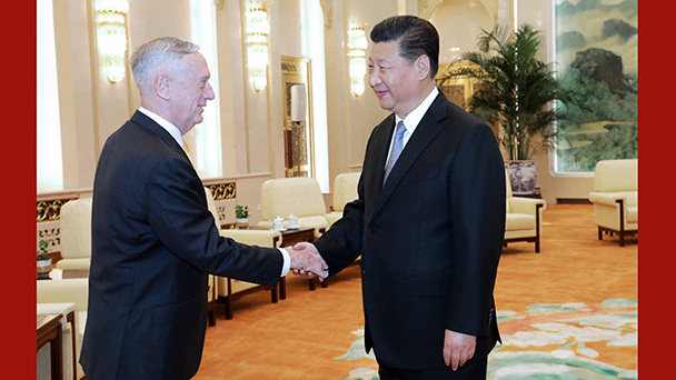 國(guó)家主席習(xí)近平27日在人民大會(huì)堂會(huì)見了來(lái)訪的美國(guó)國(guó)防部長(zhǎng)馬蒂斯。