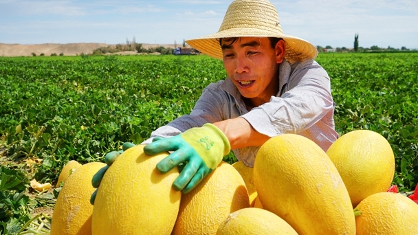 連日來(lái),新疆哈密市伊州區(qū)南湖鄉(xiāng)的萬(wàn)余畝哈密瓜陸續(xù)成熟上市,吸引眾多客商前來(lái)訂購(gòu)。