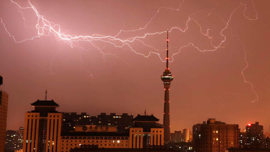 6月30日晚,北京出現(xiàn)分散性雷陣雨,局地雨較大,并伴有冰雹和短時(shí)大風(fēng)。一道道閃電劃破夜空,令人震撼。