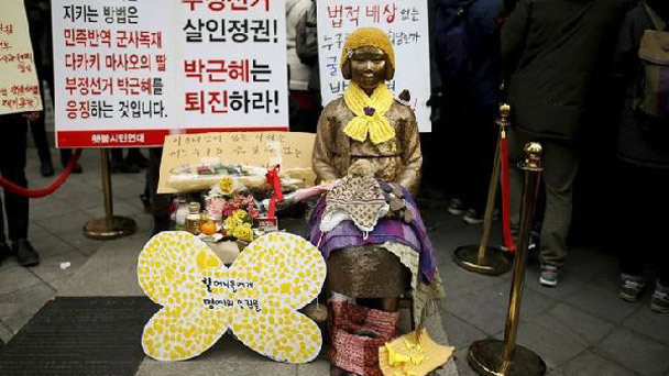 戰(zhàn)時(shí)被迫成為性奴隸的韓國(guó)婦女及其數(shù)以百計(jì)支持者12月30日舉行集會(huì),抗議首爾當(dāng)局與日本達(dá)成一項(xiàng)“屈辱”的協(xié)議來解決慰安婦問題,誓稱將繼續(xù)為正義奮斗。