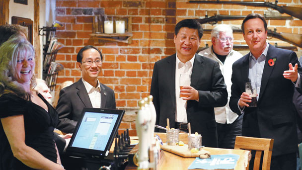 在習近平主席上周訪問英國期間,曾和首相卡梅倫一起來到當地一家傳統酒吧,品嘗啤酒和英國傳統特色炸魚薯條,輕松的照片和視頻登上眾多媒體。此后,這家英國酒吧迅速走紅。
