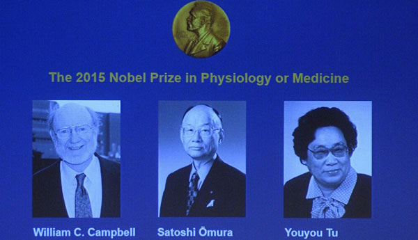北京時間10月5日下午17時30分,“諾貝爾生理學(xué)或醫(yī)學(xué)獎”獲獎名單揭曉,中國女藥學(xué)家屠呦呦,日本藥學(xué)教授大村智以及愛爾蘭的William C. Campbell三人獲獎。