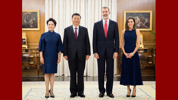 當(dāng)?shù)貢r(shí)間11月27日,國(guó)家主席習(xí)近平在馬德里薩蘇埃拉宮會(huì)見(jiàn)西班牙國(guó)王費(fèi)利佩六世。