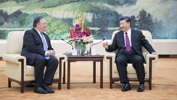 6月14日,國(guó)家主席習(xí)近平在北京人民大會(huì)堂會(huì)見美國(guó)國(guó)務(wù)卿蓬佩奧。