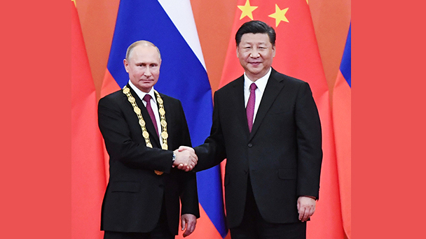 6月8日,中華人民共和國“友誼勛章”頒授儀式在北京人民大會堂金色大廳隆重舉行。國家主席習近平向俄羅斯總統普京授予首枚“友誼勛章”。