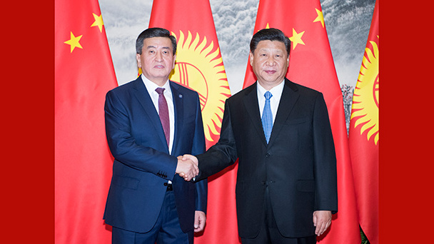 6月6日,國家主席習近平在北京人民大會堂同吉爾吉斯斯坦總統熱恩別科夫舉行會談。