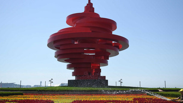 這是在青島市市南區(qū)東海路拍攝的沿街景觀(5月31日攝)。隨著上合組織青島峰會的臨近,青島市主城區(qū)道路兩側(cè)張燈結(jié)彩,五彩繽紛的花卉、綠植景觀營造出濃郁的盛會氛圍,喜迎賓朋。