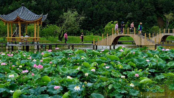 近年來,福建省武夷山市五夫鎮(zhèn)在鄉(xiāng)村振興中把發(fā)展特色種植業(yè)和旅游產(chǎn)業(yè)結(jié)合起來,大面積種植荷花,吸引眾多游客前來觀賞,有效帶動鄉(xiāng)村經(jīng)濟的發(fā)展。