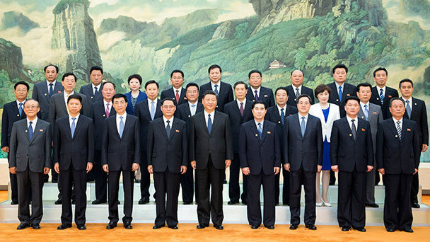 5月16日,中共中央總書記、國家主席習近平在北京會見由朝鮮勞動黨中央政治局委員、中央副委員長樸泰成率領(lǐng)的朝鮮勞動黨友好參觀團。