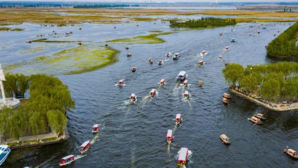 “五一”小長假期間,位于河北雄安新區境內的白洋淀景區風景秀麗、環境宜人,吸引不少游客前來欣賞游玩。