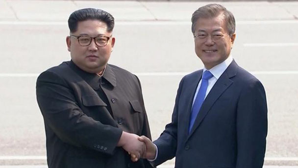韓國(guó)總統(tǒng)文在寅和朝鮮國(guó)務(wù)委員會(huì)委員長(zhǎng)金正恩于27日上午在韓朝邊境板門(mén)店軍事分界線舉行首次會(huì)面。