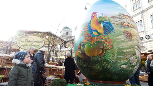 當(dāng)?shù)貢r(shí)間3月30日,在奧地利維也納的復(fù)活節(jié)市場(chǎng),人們紛紛挑選著復(fù)活節(jié)特色商品。
