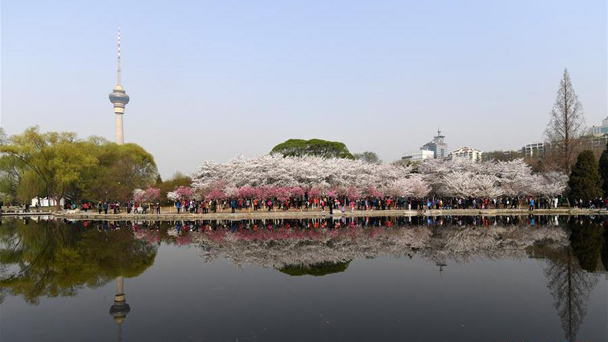 隨著氣溫的持續(xù)攀升,北京玉淵潭公園的近兩千株早櫻相繼綻放,比往年提前進(jìn)入最佳觀賞期。