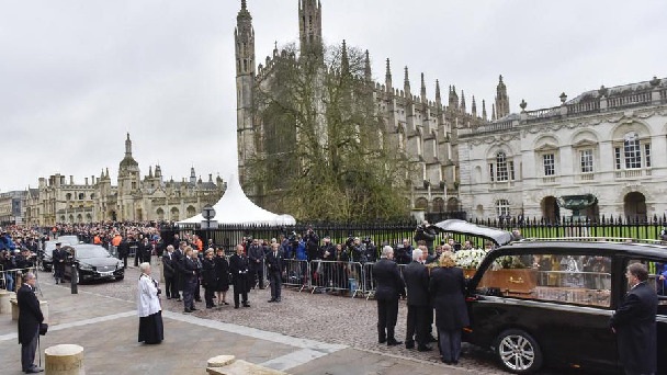 當(dāng)?shù)貢r(shí)間3月31日下午,已故英國(guó)科學(xué)家霍金的葬禮在劍橋大學(xué)的圣瑪麗教堂舉行?;艚鸬募胰?、同事和朋友等約500人出席了這個(gè)私人紀(jì)念活動(dòng)。