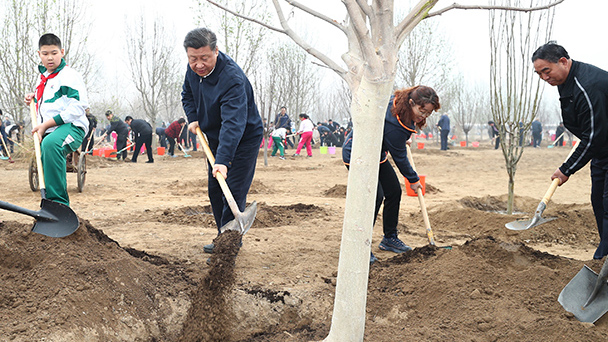 4月2日,黨和國(guó)家領(lǐng)導(dǎo)人習(xí)近平、李克強(qiáng)、栗戰(zhàn)書(shū)、汪洋、王滬寧、趙樂(lè)際、韓正、王岐山等來(lái)到北京市通州區(qū)張家灣鎮(zhèn)參加首都義務(wù)植樹(shù)活動(dòng)。