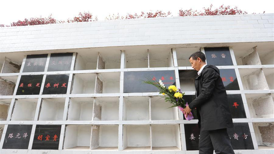 4月2日,市民在六枝仙鶴山生態(tài)陵園手捧鮮花,祭祀通過(guò)花壇葬安葬的親人。新華社記者 歐東衢攝 4月2日,市民在六枝仙鶴山生態(tài)陵園手捧鮮花,祭祀通過(guò)花壇葬安葬的親人。
