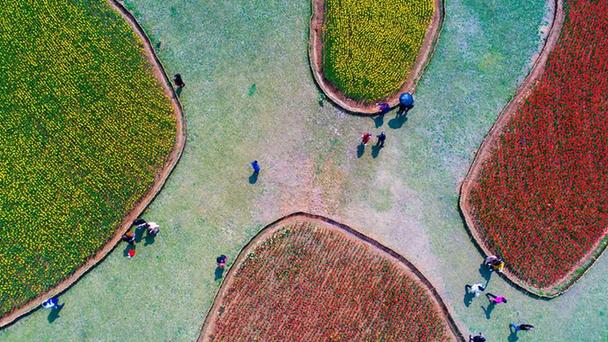 近日,位于安徽巢湖的半湯郁金香高地內的200余萬株郁金香盛開,并免費向游客開放游覽,吸引了巢湖市區以及周邊地區的游客前來踏春賞花。
