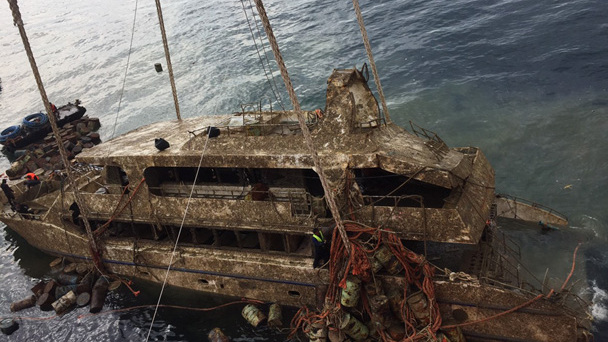 當地時間11月17日下午,泰國有關方面克服困難,將今年7月5日普吉游船傾覆事故中沉沒的“鳳凰”號打撈出水。