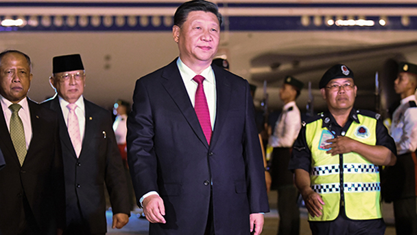 11月18日,國家主席習近平抵達斯里巴加灣,開始對文萊達魯薩蘭國進行國事訪問。