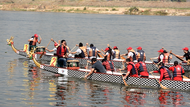 當地時間2月24日,“歡樂春節”尼羅河龍舟大賽在埃及開羅尼羅河畔舉行。來自中國、埃及、法國等國的12支代表隊在尼羅河上競逐,共慶中國新春。