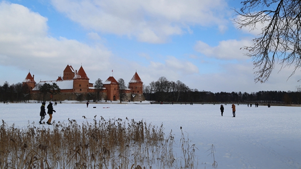2月24日,人們在雪后游覽立陶宛首都維爾紐斯以西約25公里的特拉凱城堡。 特拉凱城堡位于維爾紐斯以西約25公里的加爾韋湖湖心島上,始建于14世紀,是立陶宛著名旅游景點。