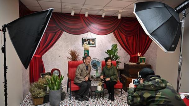 11月15日,兩名參觀者在“時光博物館”里的年代照相館拍照留念。新華社記者沈伯韓 攝 11月15日,在“歷史巨變”展區,一名參觀者在拍攝老式自行車和縫紉機。