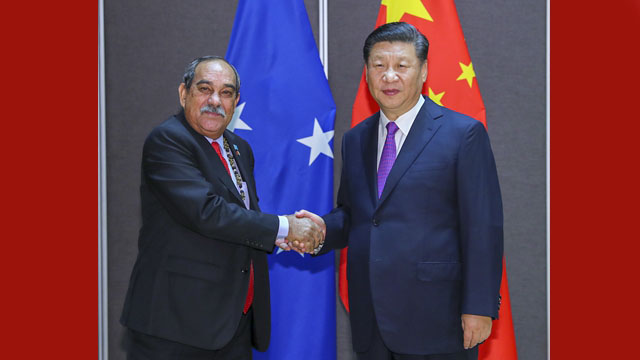 11月16日,國家主席習近平在莫爾茲比港和巴布亞新幾內亞總理奧尼爾共同出席中國援建的布圖卡學園啟用儀式。11月16日,國家主席習近平在莫爾茲比港和巴布亞新幾內亞總理奧尼爾共同出席中國援建的布圖卡學園啟用儀式。