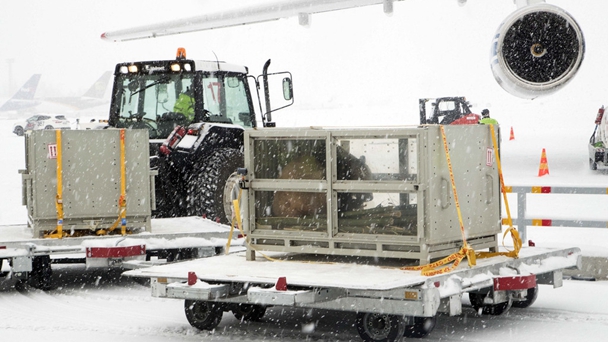 當(dāng)?shù)貢r(shí)間2018年1月18日,中國租借給芬蘭的兩只大熊貓“華豹”和“金寶寶”乘坐專機(jī)抵達(dá)芬蘭赫爾辛基,開始為期15年的駐外生活。芬蘭還為兩只大熊貓取了芬蘭名字,4歲雄性大熊貓“華豹”得名“皮呂”,3歲雌性大熊貓“金寶寶”則得名“盧米”。