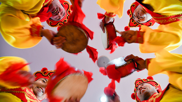 1月19日,山東省商河縣鼓子秧歌藝術(shù)團(tuán)演員在編排節(jié)目。目前,承擔(dān)此次交流任務(wù)的山東省商河縣鼓子秧歌藝術(shù)團(tuán)正抓緊編排《黃河古韻》《鼓鄉(xiāng)花傘》《棒舞飛揚(yáng)》《傘慶豐年》《鼓樂齊鳴》等節(jié)目。
