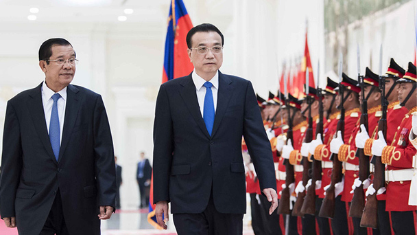 當(dāng)?shù)貢r(shí)間1月10日晚,國務(wù)院總理李克強(qiáng)在金邊會(huì)見老撾總理通倫。